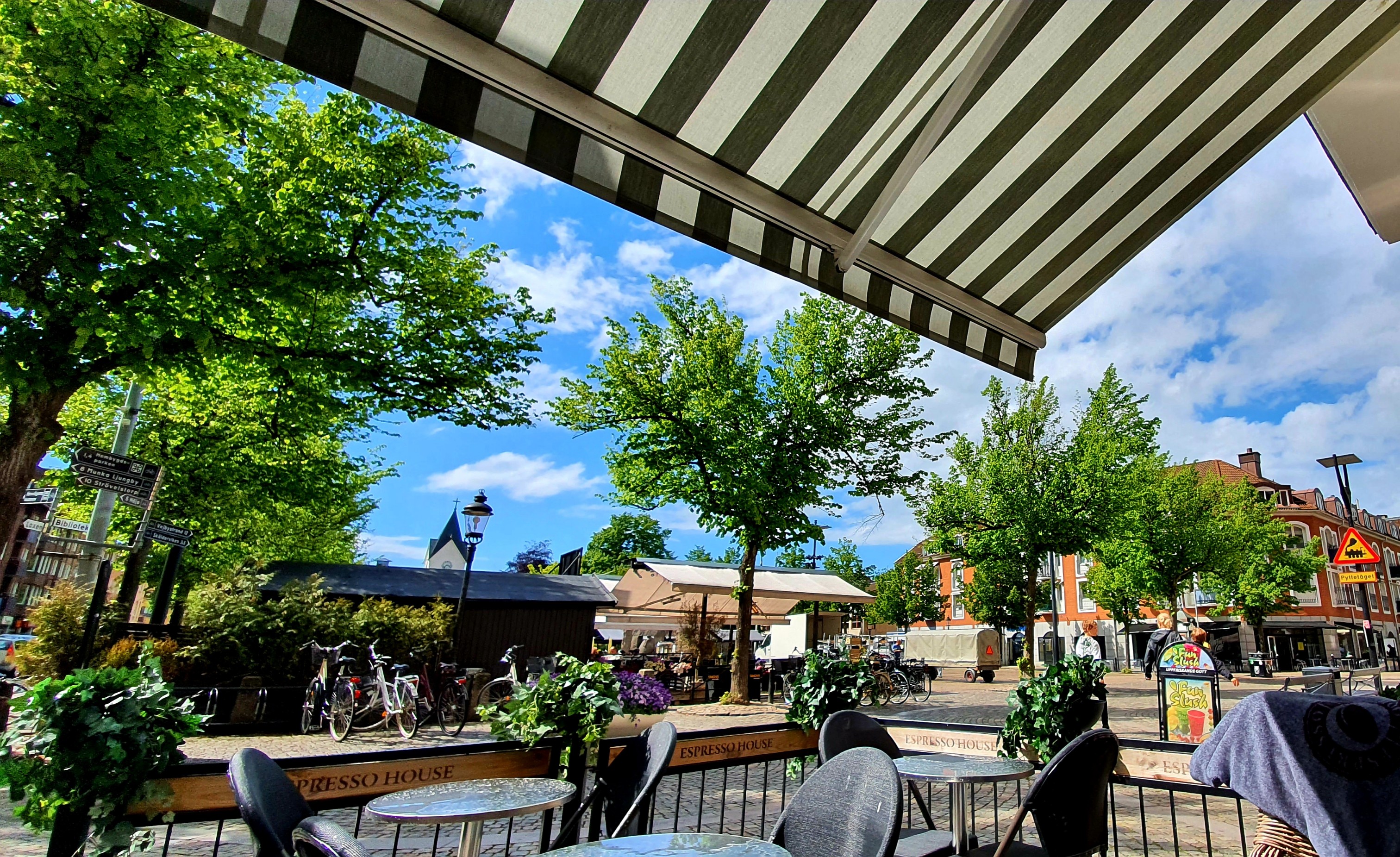 In Ängelholm schlenderte ich durch den kleinen Park und durch die Ladenstraßen, aß zu mittag und ließ mich im Espresso Café nieder, kuschelte mich draußen in eine Decke ein. Mein 2. Stück Kuchen schaffte ich nicht, dafür waren diese schwarzen Vögel wie in Laholm schon an der Konditori Cecil, und auch Meisen oder Spatzen darauf sehr erpicht. Und so trauten sie sich immer mehr und mehr heran um den Kuchen wegzupicken. Sehr amüsant, so musste ich das auch im Video festhalten. Ich holte mir noch einen Caramel Latte und als ich wieder kam, war das ganze Stück verschwunden. Unglaublich, aber überhaupt nicht so schlimm. Ich liebe ja Tiere.